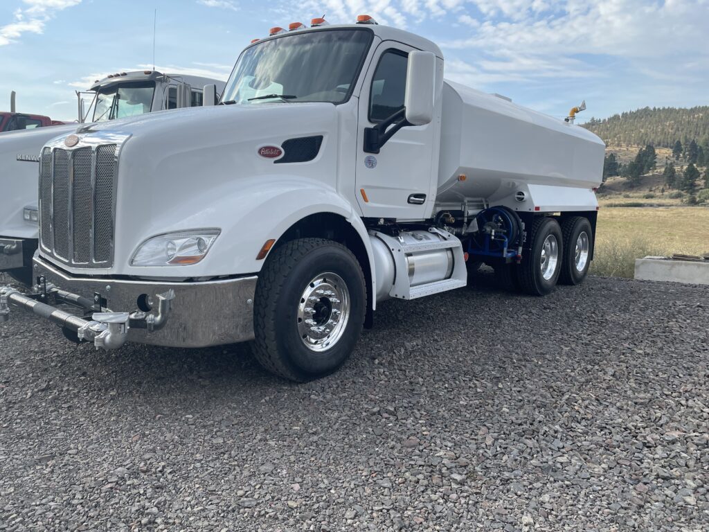 - All of the Peterbilt 579 Water Trucks have been Refurbished. New Paint and Chrome Bumpers. Tires and Wheels. Brakes, Air lines, lights, and gauges are in working order. Trucks are refitted with Heavy Duty rears. 44-46,000# on Hendrickson V-Block, Chalmers, or Volvo T-Ride Suspension. Some with Double Lockers. Plated Frame. 5.29 or lower gear ratio’s. 100,000 miles or less on rears. Recon Overdrive Transmission installed on most trucks. Weight rating on the front axle is 14,600# or more. Truck warranty is available.