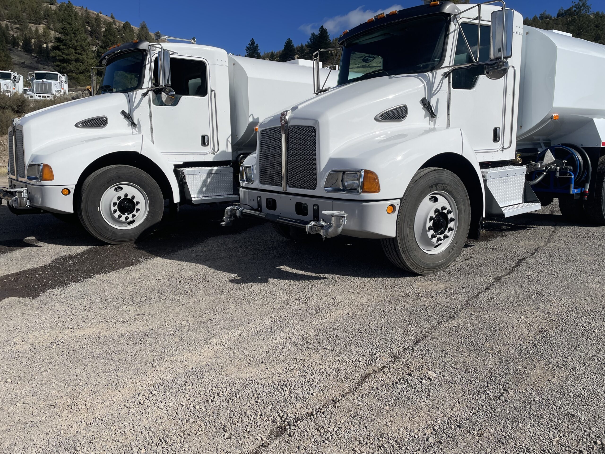 - All of the Kenworth T800 Water Trucks have been Refurbished. New Paint and Chrome Bumpers. Tires and Wheels. Brakes, Air lines, lights, and gauges are in working order. Trucks are refitted with Heavy Duty rears. 44-46,000# on Hendrickson V-Block, Chalmers, or Volvo T-Ride Suspension. Some with Double Lockers. Plated Frame. 5.29 or lower gear ratio’s. 100,000 miles or less on rears. Recon Overdrive Transmission installed on most trucks. Weight rating on the front axle is 14,600# or more. Truck warranty is available.